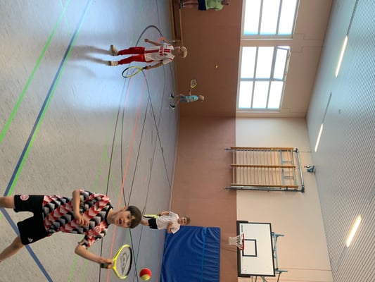 Bei schlechterem Wetter wechseln wir gerne in die Turnhalle. Auch hier können die Kinder jederzeit ihrem Bedürfnis nach Bewegung und Laut-Sein nachkommen. Die diversen Materialien aus dem sport- und freizeit-pädagogischen Bereich stehen den Kindern jederzeit zur Verfügung.