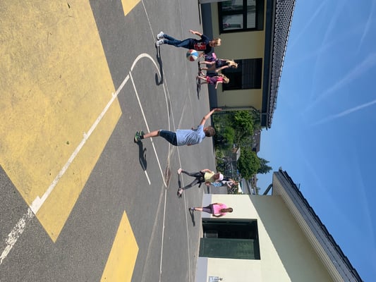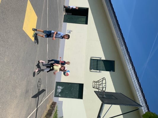 Nicht vergessen werden darf unser großes Außengelände mit vielfältigsten Beschäftigungsmöglichkeiten. Wir verfügen über einen großen Fahrzeugpark, eine Vogelnestschaukel, eine Wippe, ein großes Klettergerüst mit verschiedenen Bewegungsmöglichkeiten, ein kleines Fußballfeld, einen Basketballkorb und vieles mehr.