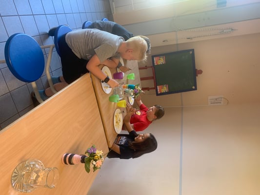 Ein weiterer OGS-Raum ist die „Mensa“. Hier essen alle Kinder zu Mittag. Außerdem verfügt die Mensa über eine eigene Küche, die für die Koch- und Back-AG genutzt wird.